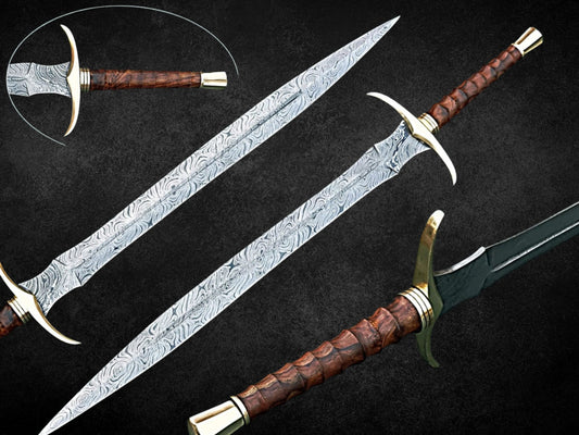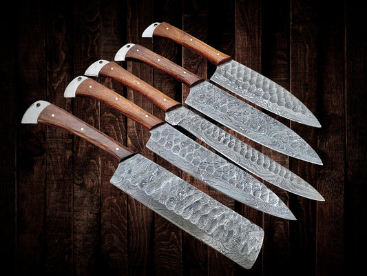 Brown Rose Wood Chef Set Real Damascus Steel Five Knives